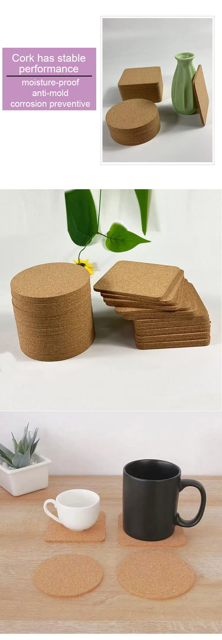 قواعد أكواب من الفلين لأكواب القهوة، قواعد أكواب جمالية للمشروبات، الجزء السفلي لكوب الشرب